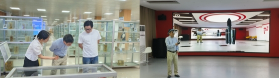 郑贵洲教授一行首先参观了生命科学标本陈列馆,深入了解该馆与中心协同育人情况 ,并亲身体验中心 MR 教学环境。郑贵洲教授认为,中心“三维融合数智赋能”特色鲜明,标本陈列馆育人模式将场馆教育融入课程思政、专业课堂、第二课堂、社会服务等方面,并积极利用现代科技手段,取得了良好的育人成效。