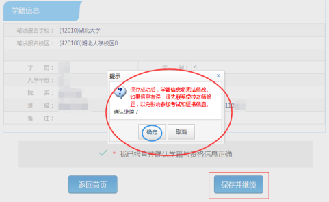 (注意:在此期间,只能核对信息,不能报名及缴费)