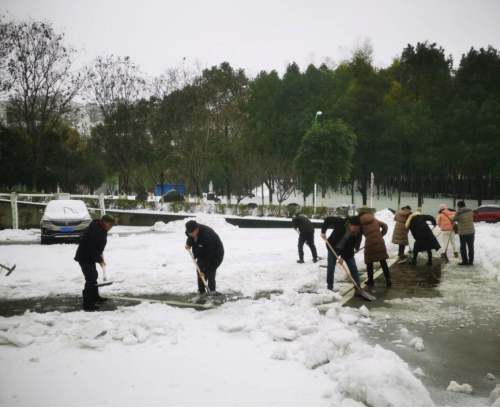 (通讯员:雷春蕾)龙年新春伊始,咸宁遭遇罕见持续性低温雨雪冰冻天气,全市道路被冰雪冻雨覆盖,出行困难。为保障新学期顺利开学,教务处全体教职工积极响应校党委号召,提前结束休假筹划开学各项工作。为确保学生能安全顺利领取教材,保证课堂教学质量,2月23日上午,教务处处长鲍翠玉带领部门成员进行铲雪除冰工作。